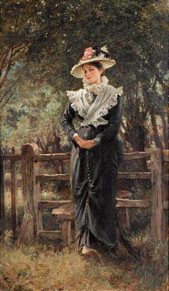 PORTRAIT OF MISS COLLINSON SHEDLEY BEFORE A STILE