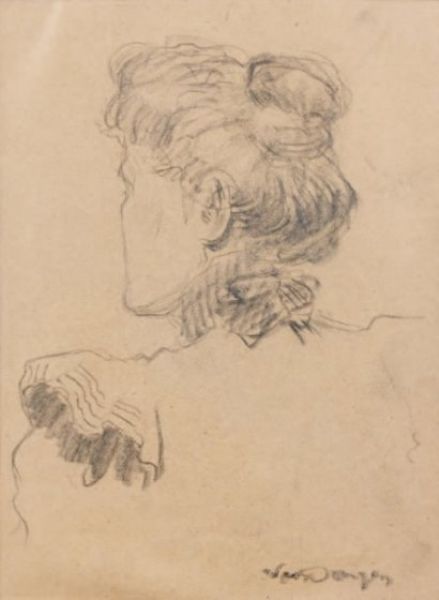 Femme au chignon Dessin au fusain