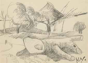 Felled Tree Trunk; Houses in a Landscape; Village