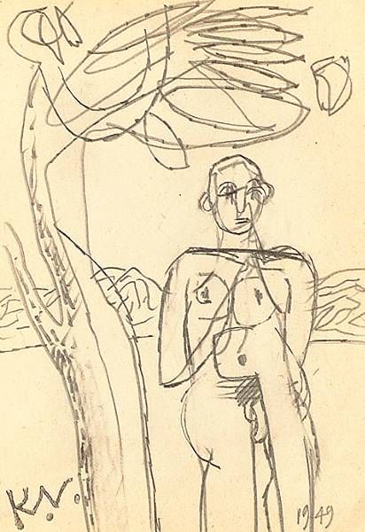 Male nude by a tree, 1949