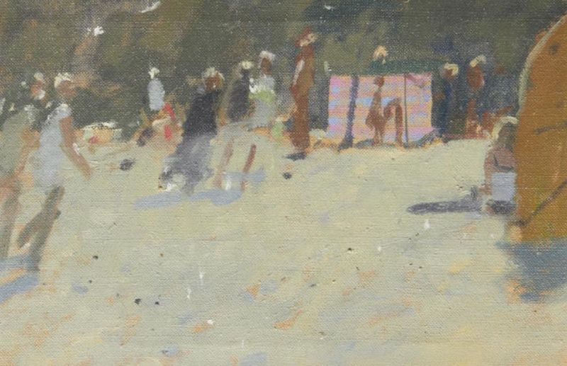 Beach scene with windbreak