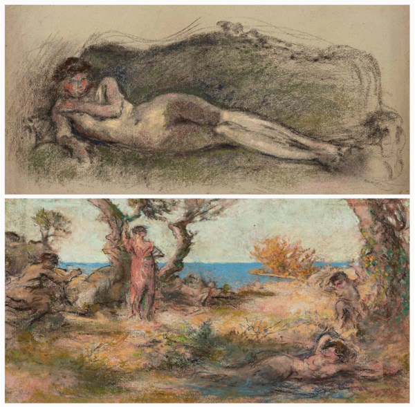 | Femme nue allongée sur un canapé ; Le vieux Chiron ; Personnages sur la plage des Graniers à Saint Tropez | |