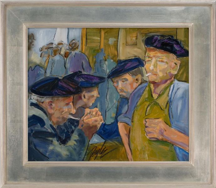 Milton Avery and friends in a bar setting, all wearing purple berets