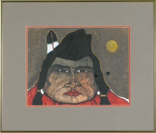 | Portrait of a native American Indian in red costume with eagle feather | |