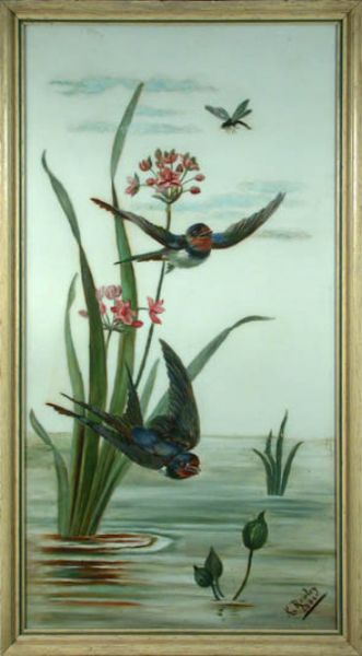Oil on milk glass