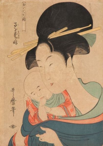 | Matka z niemowlęciem - rycina z cyklu: Nakute nana kuse (Siedem złych nawyków) | |