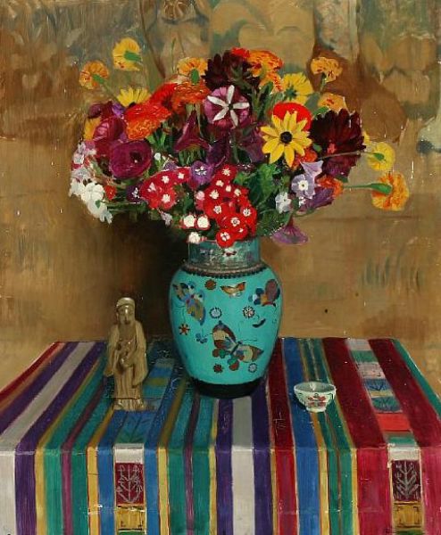 Colourful flowers in an oriental cloisonné vase