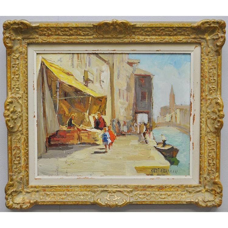 Venedig med folkliv och marknadsstånd