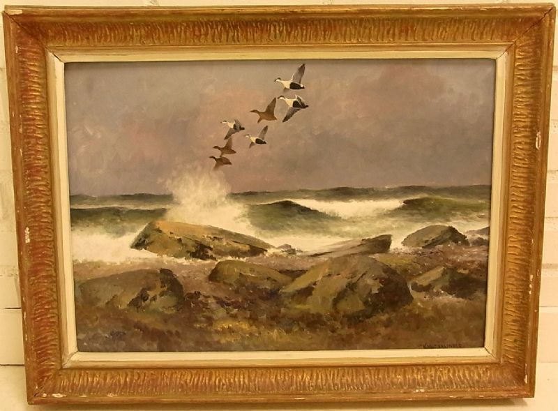 Kustmotiv med sträckande änder