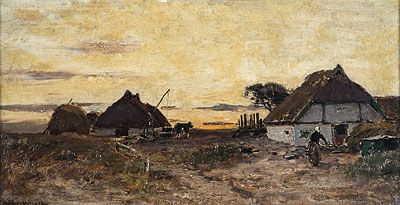 Bauernhäuser am abendlichen Bodden