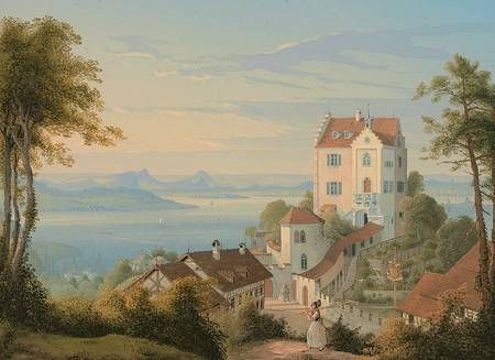 Blick auf die Burg Salenstein, den Zellersee und Radolfszell