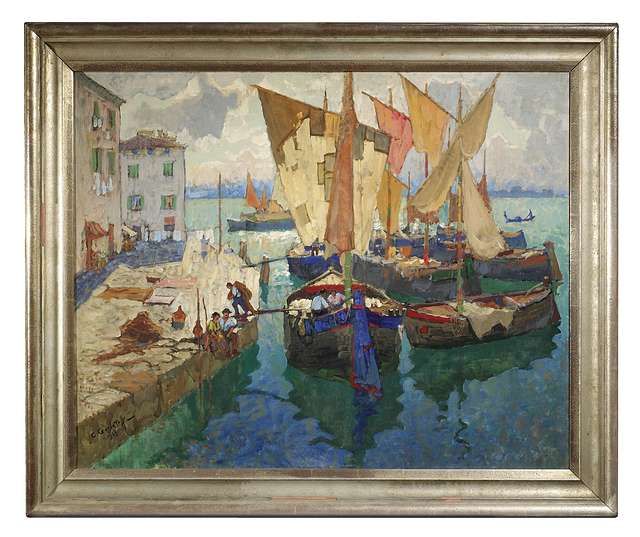 | Sailing ships at a landing stage in the Lagoon of Venice | |