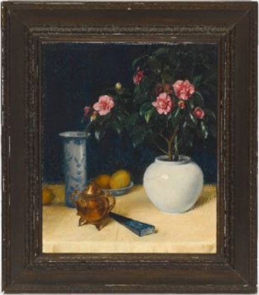 Stillleben mit Azalee und Fächer