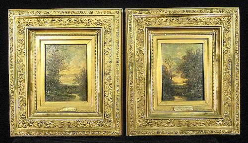 A landscape at sunset with figures by a stream-2 items