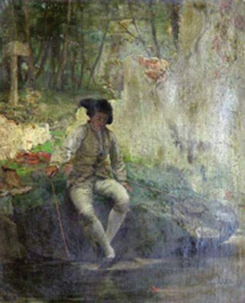 Pêcheur en rivière regardant son bouchon