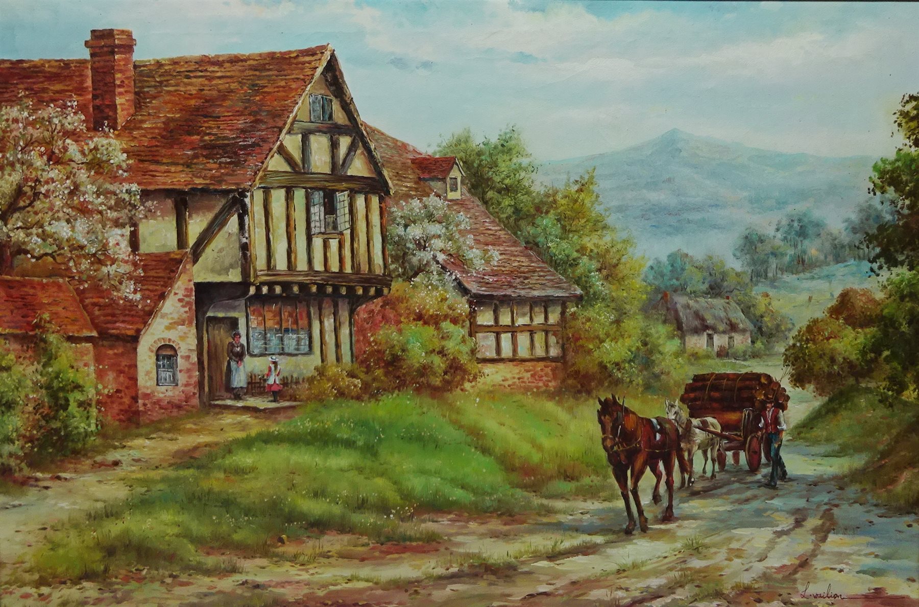 Rural Scene of Houses, Figures and Horses Pulling Cart