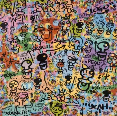| Spray Paint AND MARKER ON CANVAS ; SIGNED, COUNTERSIGNED, TITLED AND DATED ON THE BACK | |