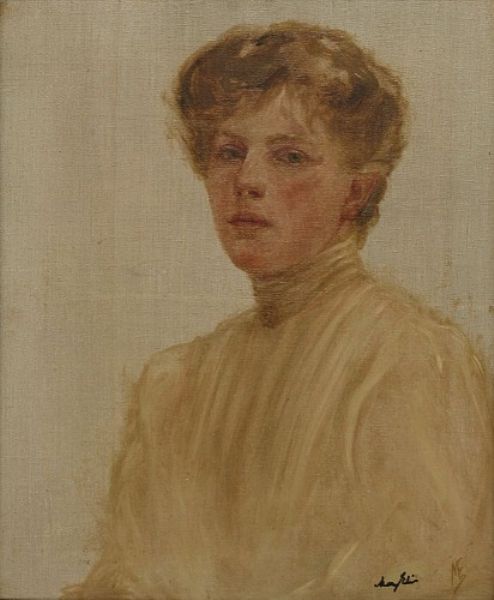 PORTRAIT OF THE ARTIST, HALF LENGTH, IN A CREAM BLOUSE