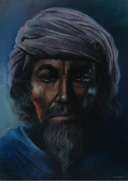 Bust portrait of elderly man in turban