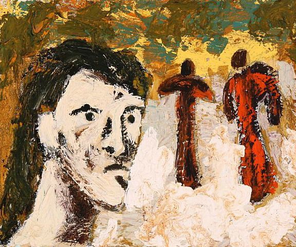 Composition with face and figures.