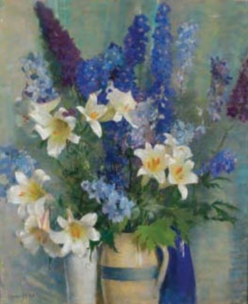LARKSPUR AND LILLIES.