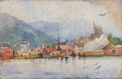VILLE AU BORD D'UN LAC DE MONTAGNE