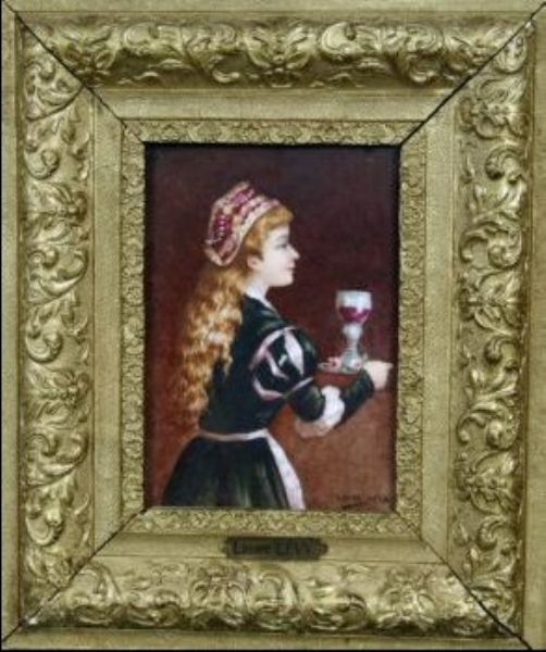 Dienstmädchen mit gefülltem Weinglas auf Tablett