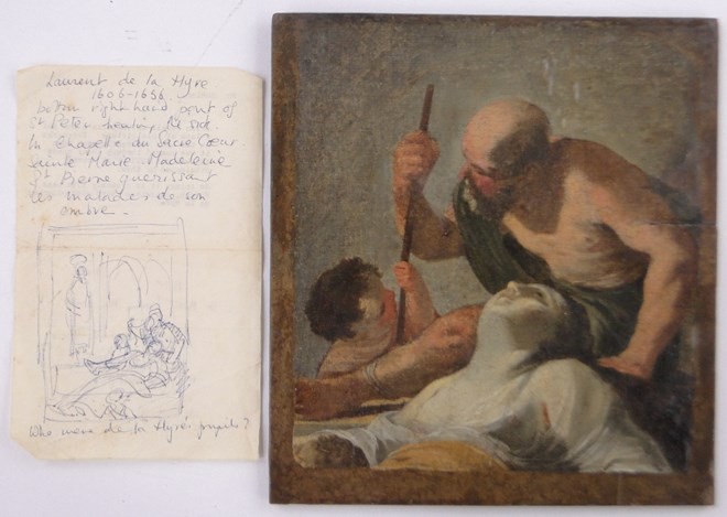 | study for part of St. Peter healing the sick (the finished painting is held in The Louvre, Paris) wax collection seals on revers | |