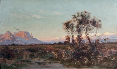 Paysage, vallée de l'Isère et les sommets enneigés