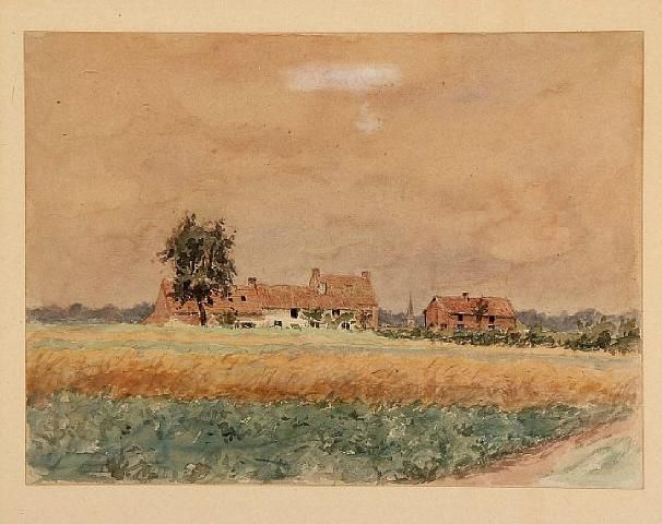 A field and houses at Rebecq in Belgium