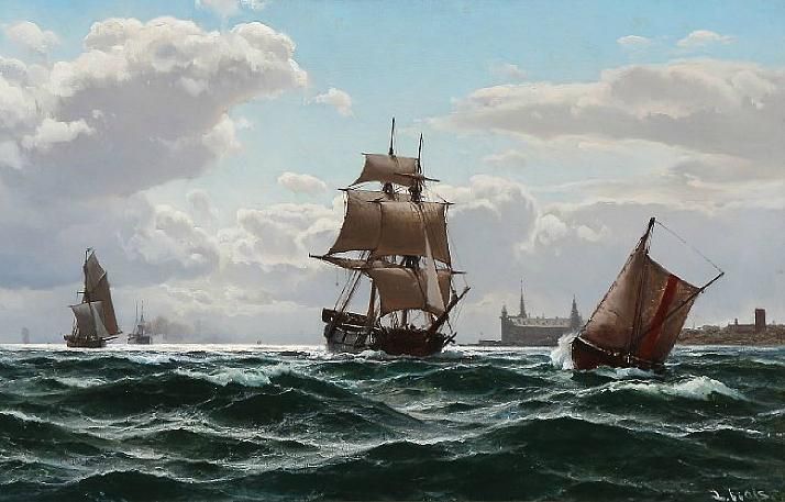 Sailing ships off the coast of Elsinore Castle