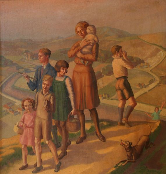 View of a Family walking on a Hillside within a Landscape