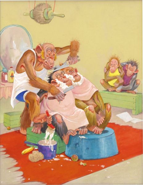 Gran'pop, Cutting Down the Overhead, calendar illustration, c. 1940