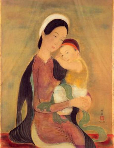 Jeune femme assise tenant dans ses bras un jeune garçon