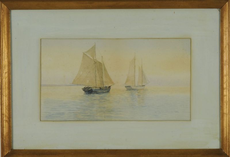 Depicting two sailboats off the coast