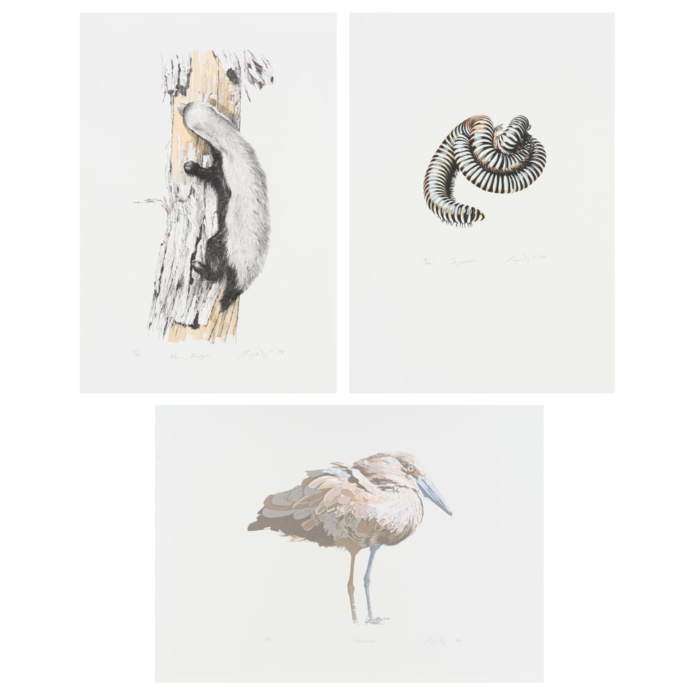 the first: image size: 30,5 by 35,5cm; sheet size: 50 by 70cm, unframed; the second: image size: 16,5 by 17,5cm; sheet size: 55 by 38,5cm, unframed; the third: image size: 42 by 20cm; sheet size: 55,5 by 37,5cm, unframed, (1) signed, dated 94, number | |