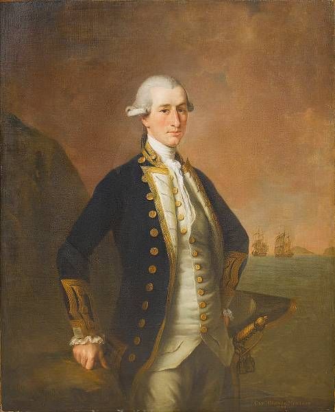 | Portrait of Captain Sir George Montagu, standing, three-quarter-length, with shipping beyond | |