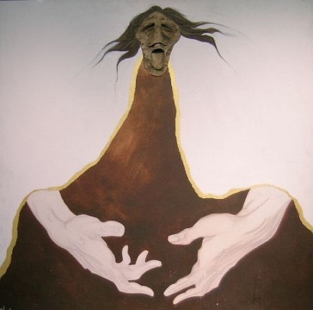Oil on canvas with fabric collage