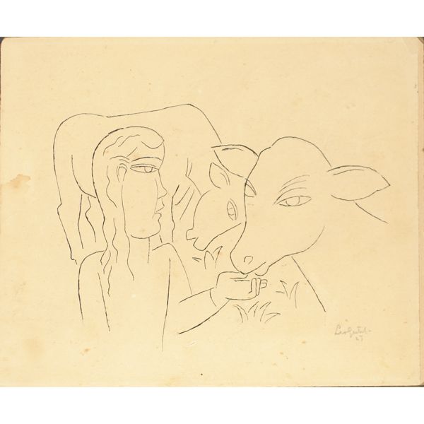 Girl with Calfs, School of Paris modernist rendering