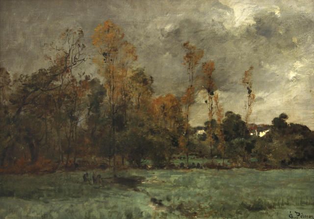 A landscape under darkening skies, thought to be Rochefort-en-Terre, Brittany
