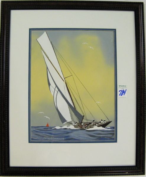 | Yacht with full complement of sailors (14) with red buoy in the distance | |