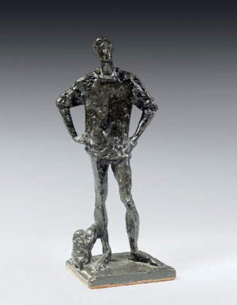 HOMME DEBOUT, MAINS SUR LES HANCHES