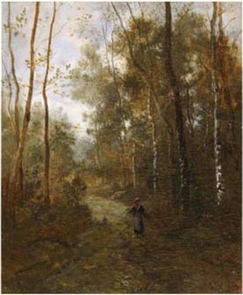 Chemin de la forêt de Fontainebleau, paysanne en chemin