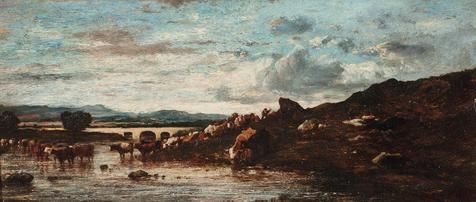 Viehherde an einer Furt
