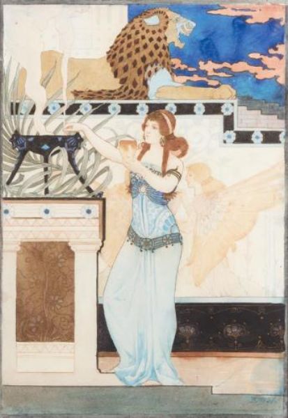 | Watercolor and pencil with gilt highlights, framed and glazed | |