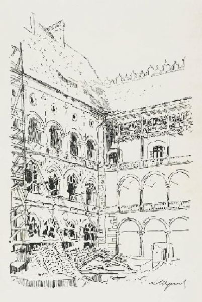 | Krużganki na Wawelu w trakcie przebudowy | |