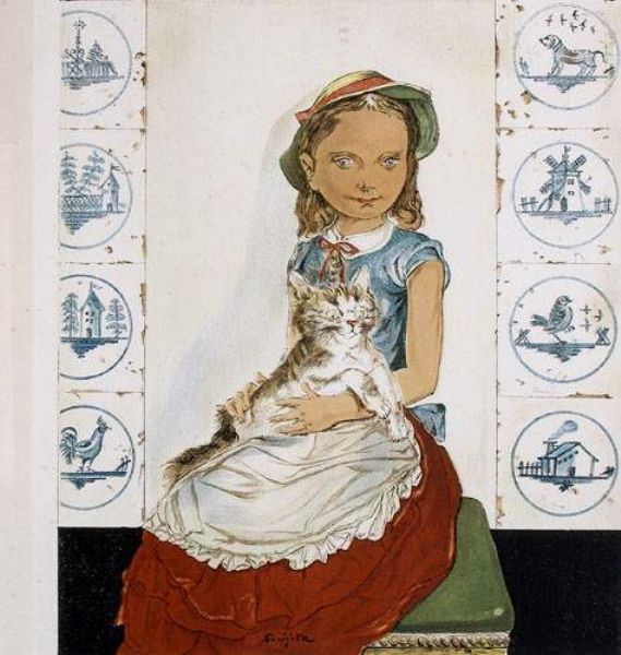 Jeune fille assise avec un chat, 1956.