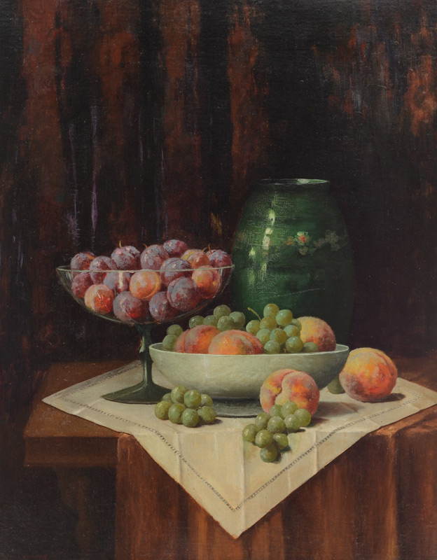 | Still Life with Plums, Peaches, Grapes and Pottery | |