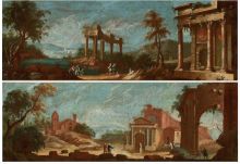 | A Pair of Architectural Capriccios with Ruins and Figures in Extensive Italianate Landscapes, circa 1740 | |