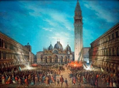 VENISE, LA PLACE SAINT-MARC PENDANT LE CARNAVAL,